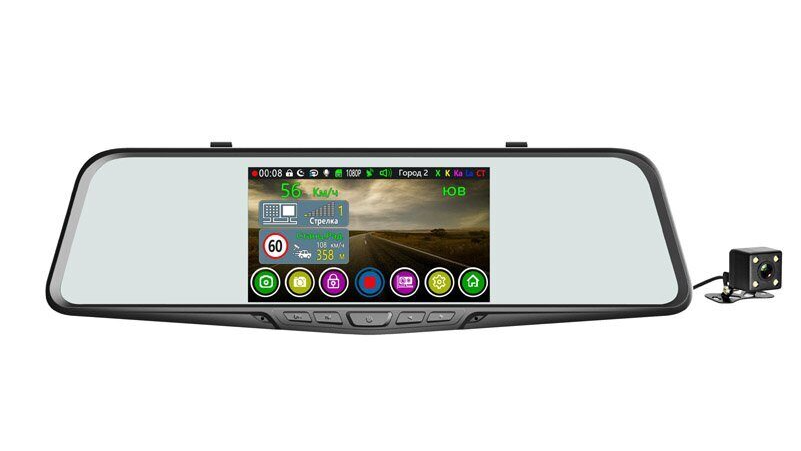 SilverStone F1 HYBRID ELBRUS - оригинальное комбо-устройство в форме зеркала с приложением и обновлением по Wi-Fi, оно ведет съемку в полноценном Full HD формате 1080 р при 30 кадрах в секунду с углом обзора 140°. Картинка получается резкой, четкой и детальной как днем, так и при недостаточном освещении: ночью, в сумерках, в дождь. Стабильность съемки обеспечивает мощный процессор.